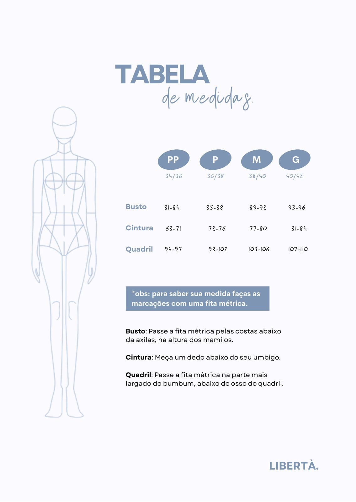 Preparamos uma tabela de medidas para facilitar suas escolhas no site.