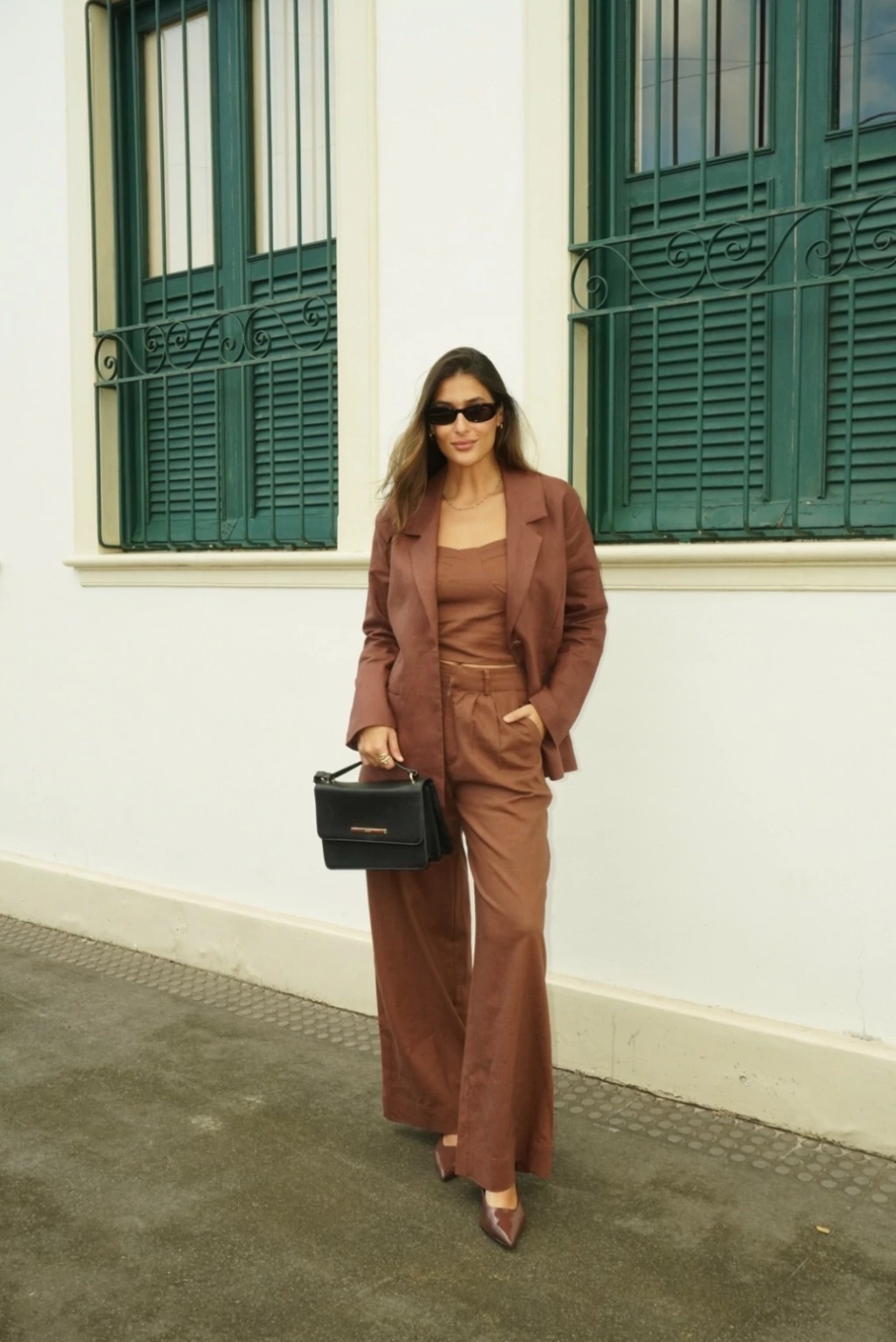 Combine o Blazer Linho Gisa com a calça da mesma cor para um look monocromático poderoso ou aposte em jeans para uma proposta casual chic e descontraída, ideal para ocasiões do office look ao passeio urbano.
