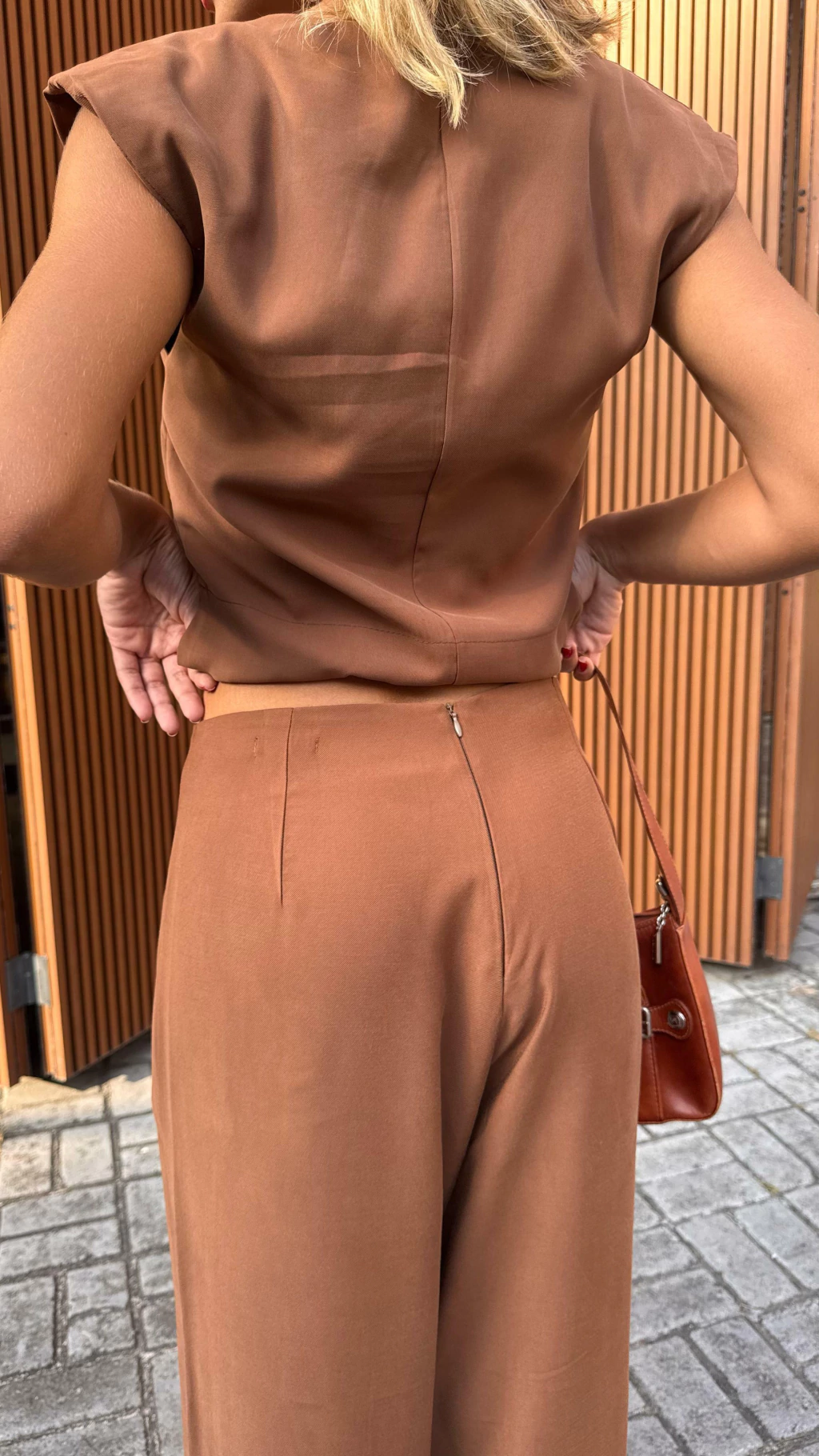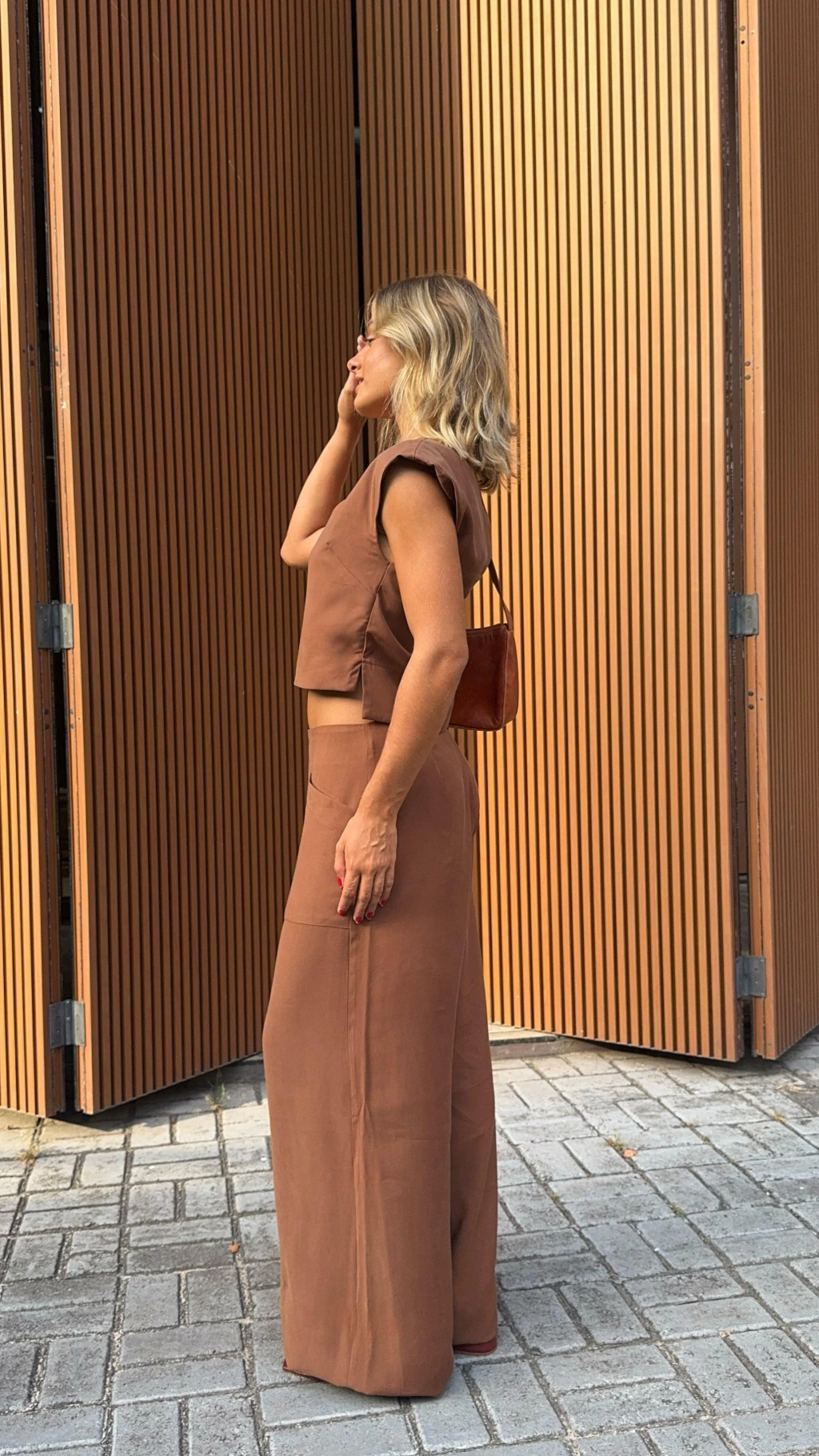 BLUSA RAFAELA - A blusa recorte alfaiataria que você precisa para o seu dia a dia! Com manga curta e uma pequena fenda nas laterais, esta peça é perfeita para quem busca um toque de sofisticação.