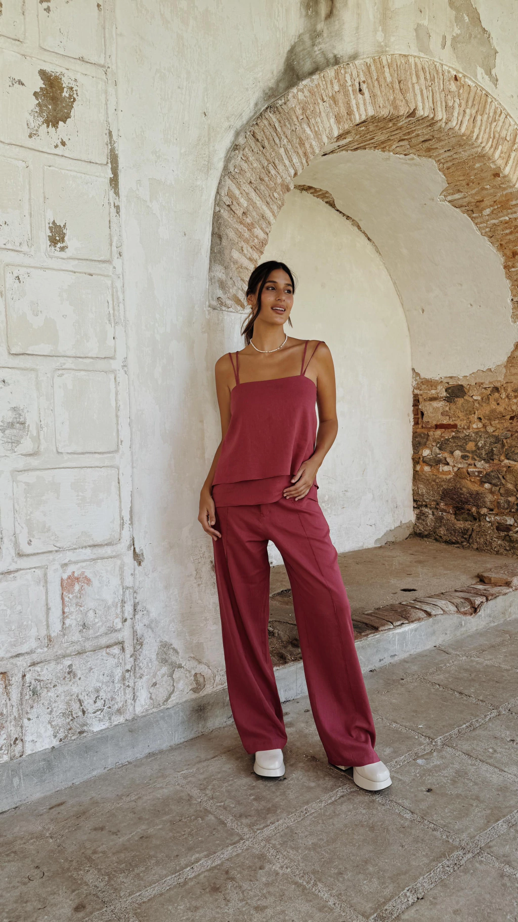 Calça de caimento solto e elegante, confeccionada em viscose com linho. Conta com cós reto, pregas e nervuras frontais, que alongam a silhueta e trazem sofisticação ao visual.