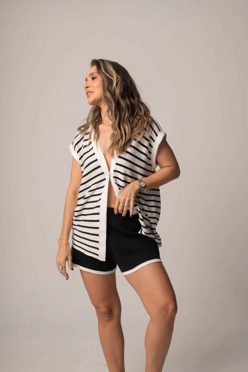 Dica de uso: a modelo Thanandra combina com short tamanho P, sendo o colete tamanho único, perfeito para diversas ocasiões.