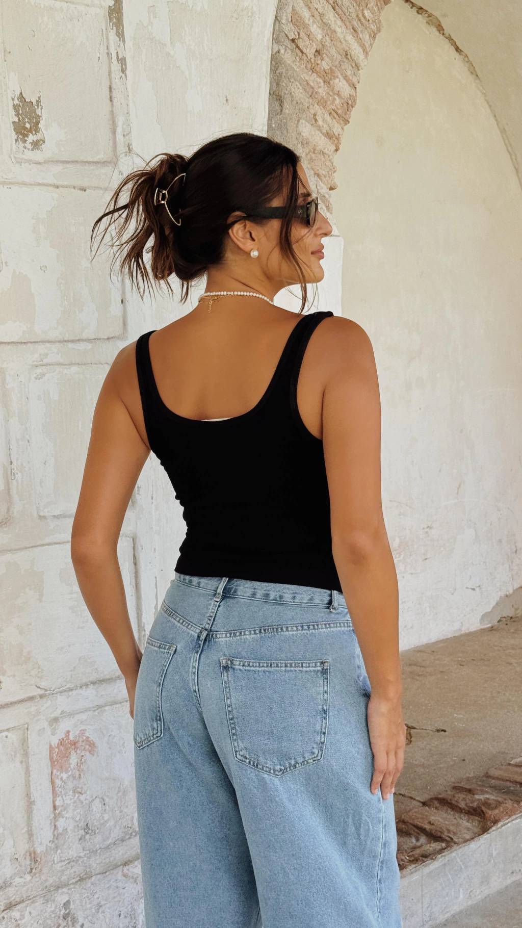 A regata preta é aquele básico indispensável no guarda-roupa, com design minimalista e toque moderno. Possui decote quadrado, alças médias e modelagem ajustada ao corpo, garantindo conforto e versatilidade. Perfeita para composições que vão do casual ao sofisticado, sendo facilmente combinada com jeans, alfaiataria ou saias fluídas.