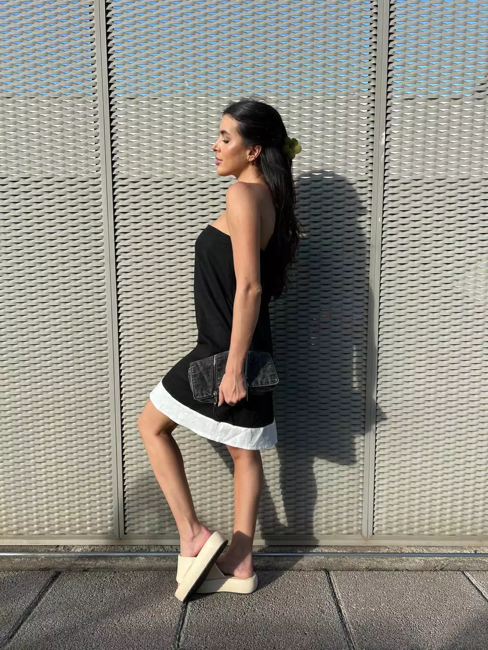 detalhe: vestido tomara que caia com elástico embutido para firmar, possui bolsos nas laterais, modelinho mais soltinho.